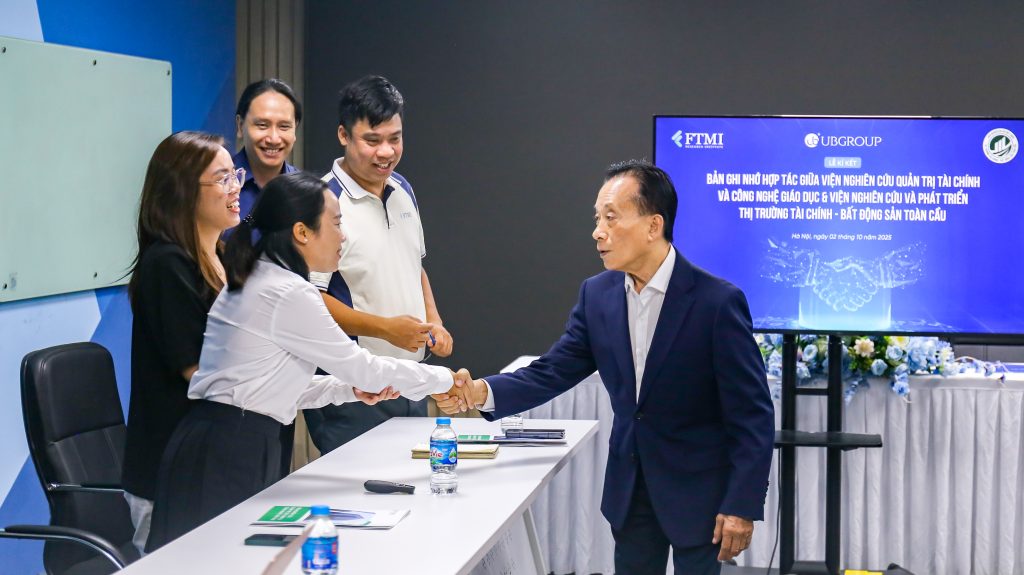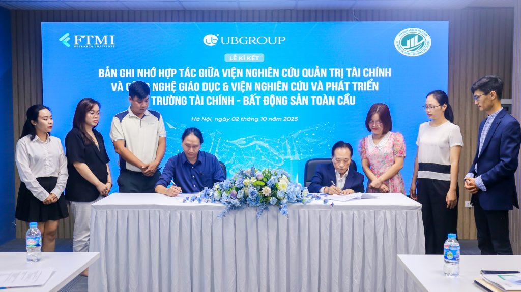 Ngày 02/10/2025, Viện nghiên cứu Quản trị Tài chính và Công nghệ Giáo dục (FTMI) cùng Viện Nghiên cứu và Phát triển Thị trường Tài chính – Bất động sản Toàn cầu (Viện Toàn Cầu) đã chính thức đặt nền móng cho mối quan hệ hợp tác chiến lược thông qua “Lễ ký kết Biên bản Ghi nhớ”, đánh dấu bước khởi đầu quan trọng trong quan hệ hợp tác giữa hai đơn vị nghiên cứu.